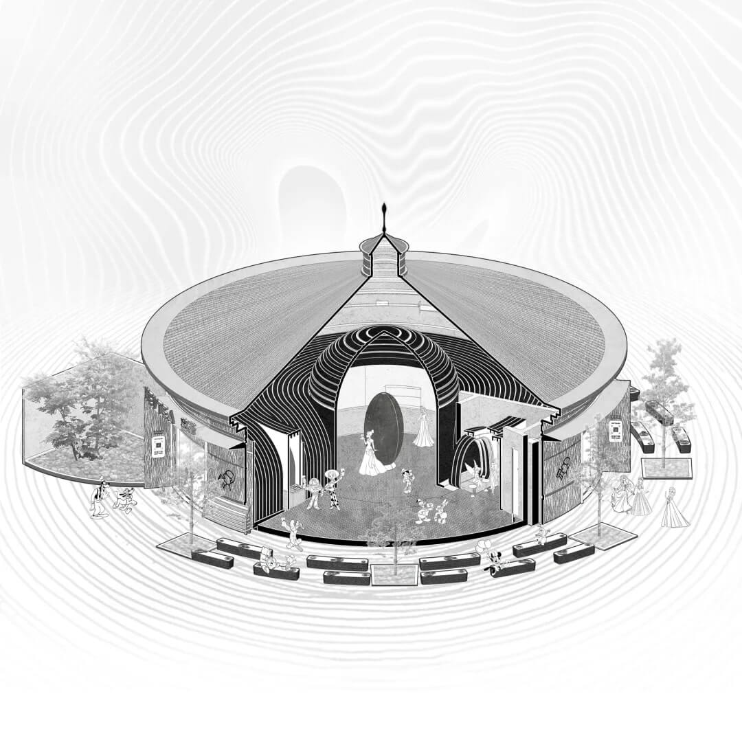 Kiến trúc bên ngoài kế thừa thiết kế mái vòm đặc trưng của Disney,